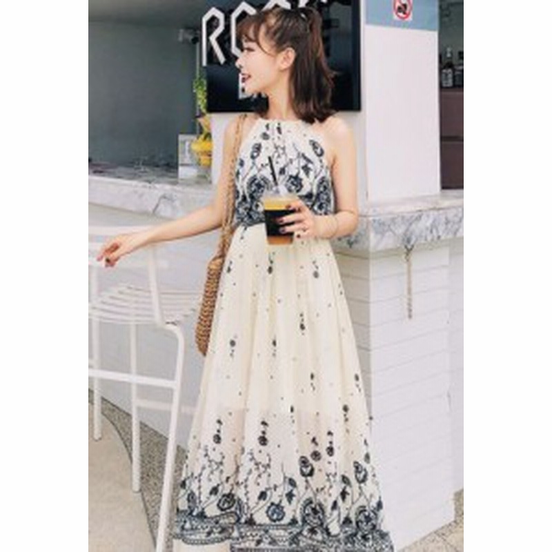 楽天市場 カジュアルワンピース ワンピ リゾート 白ワンピース 姫系 韓国風 ファッション 白 ワンピース 海 ロング丈シフォン レディース ホワイト ノースリーブ ボニール
